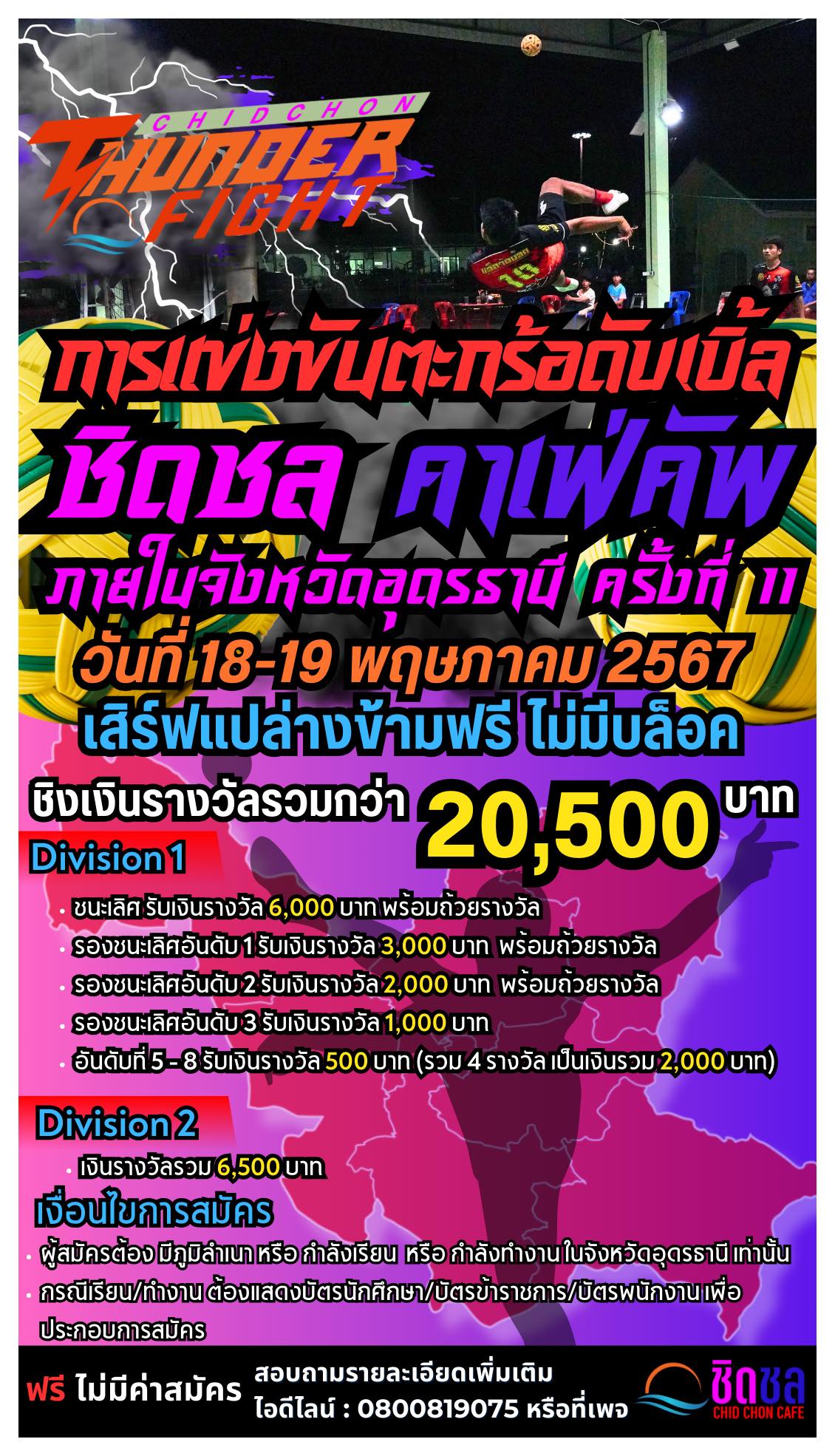 ประกาศรายชื่อทีมที่เข้าร่วมการแข่งขันเซปักตะกร้อดับเบิ้ล “ชิดชล คาเฟ่คัพ Udon Thani Edition ครั้งที่ 11”