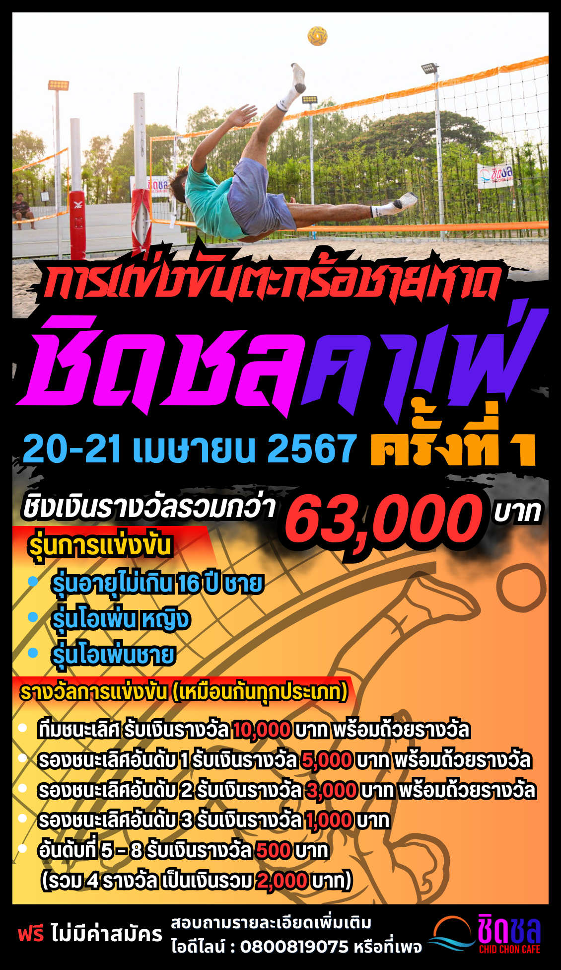 ประกาศรายชื่อทีมที่เข้าร่วมการแข่งขันเซปักตะกร้อชายหาด “ชิดชล คาเฟ่คัพ Beach Sepak Takraw ครั้งที่ 1”