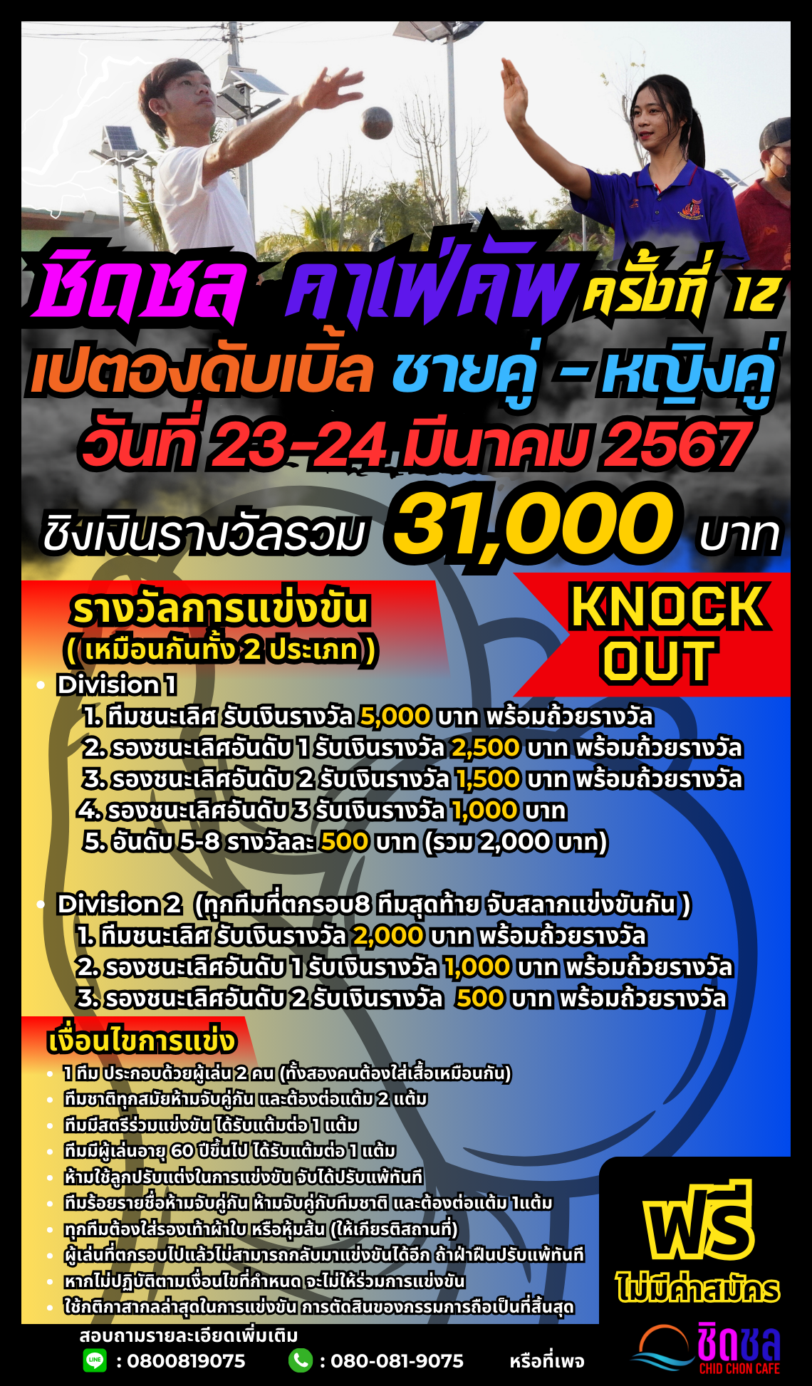 ประกาศรายชื่อทีมที่เข้าร่วมการแข่งขัน เปตองดับเบิ้ล “ชิดชล คาเฟ่ เปตองคัพ ครั้งที่ 12” ประเภทชายคู่-หญิงคู่