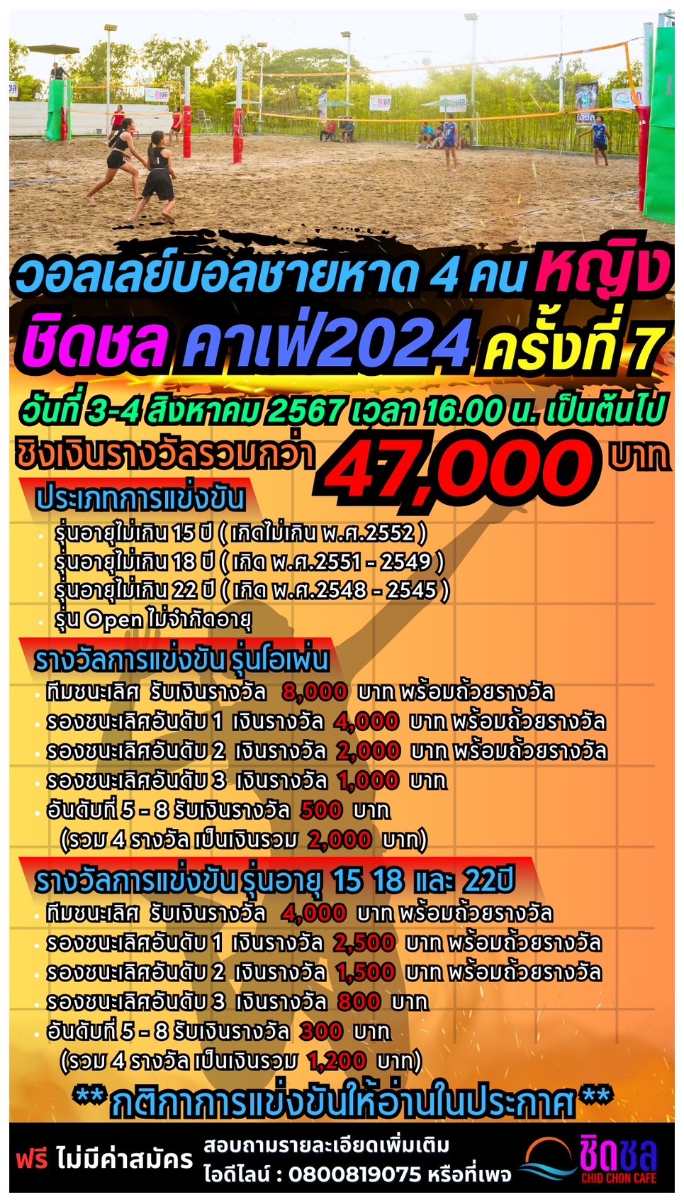 ประกาศรายชื่อทีมที่เข้าร่วมแข่งขัน “วอลเลย์บอลชายหาด (ชายคู่-หญิงคู่) ชิดชล คาเฟ่ 2024 ครั้งที่ 5”