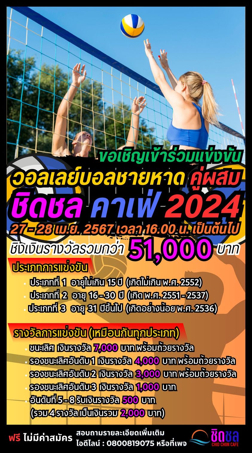 ประกาศรายชื่อทีมที่เข้าร่วมแข่งขัน วอลเลย์บอลชายหาดคู่ผสม ชิดชล คาเฟ่ 2024