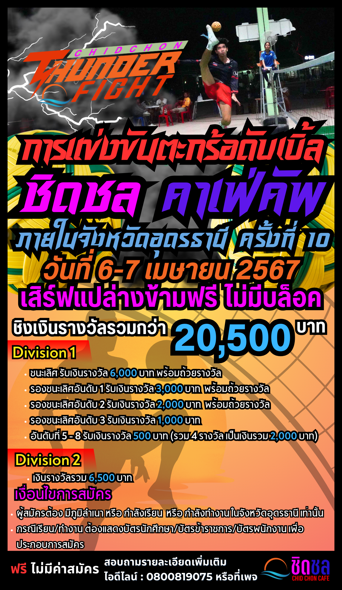 ประกาศรายชื่อทีมที่เข้าร่วมการแข่งขันเซปักตะกร้อดับเบิ้ล “ชิดชล คาเฟ่คัพ Udon Thani Edition ครั้งที่ 10”