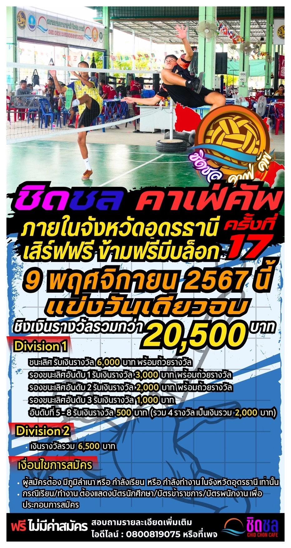 ประกาศรายชื่อทีมเข้าร่วมการแข่งขันเซปักตะกร้อดับเบิ้ล-ภายในอุดรธานี “ชิดชล คาเฟ่คัพ Udon Thani Edition ครั้งที่ 17”